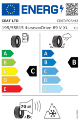 Utformad för att motstå olika förhållanden, säkerställer Ceat 4 SeasonDrive optimal bromsning på våta eller snöiga vägar tack vare dess multifunktionella lameller samt effektiv dränering av vatten och smält snö genom slitbanan och dess riktade mönster för en säker och perfekt körning oavsett väderförhållanden.